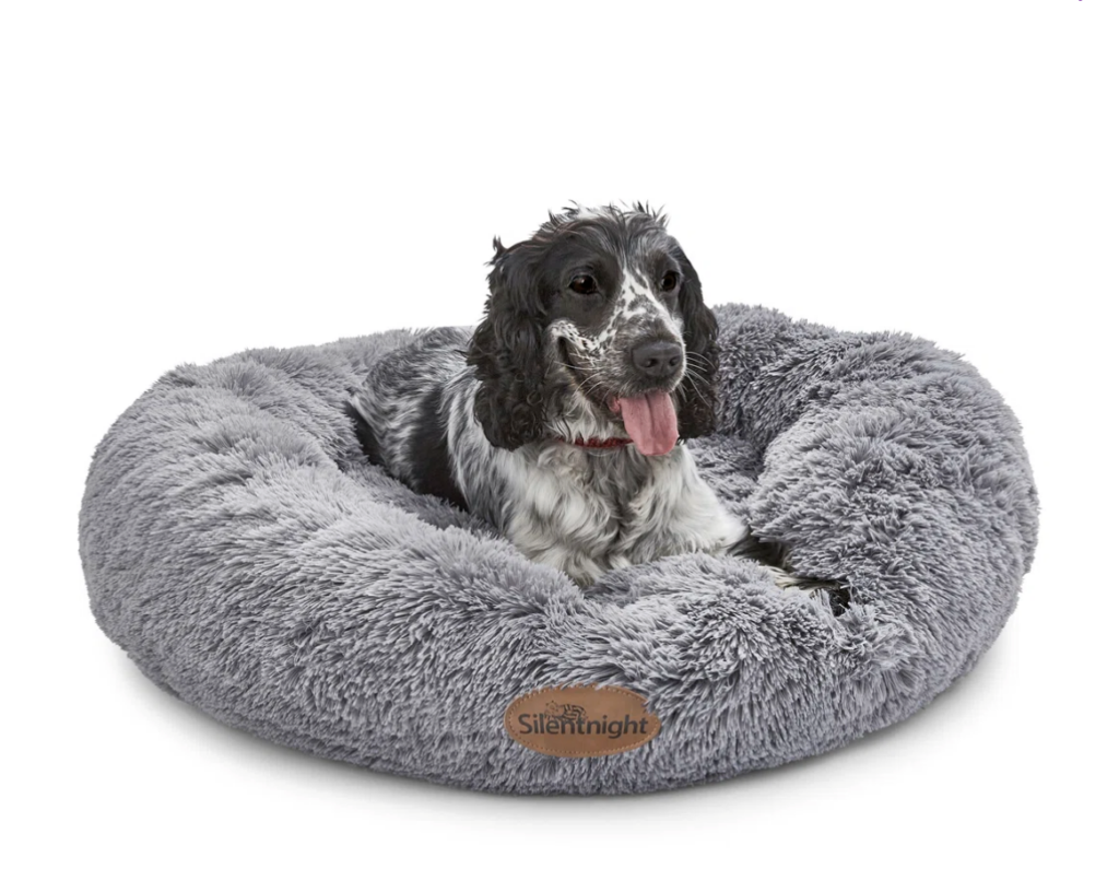 I picked up the Silentnight Calming Plush Donut Bed. You know Silentnight for human mattresses, so you know the quality is there. But seeing my dog in this thing? It’s next level.